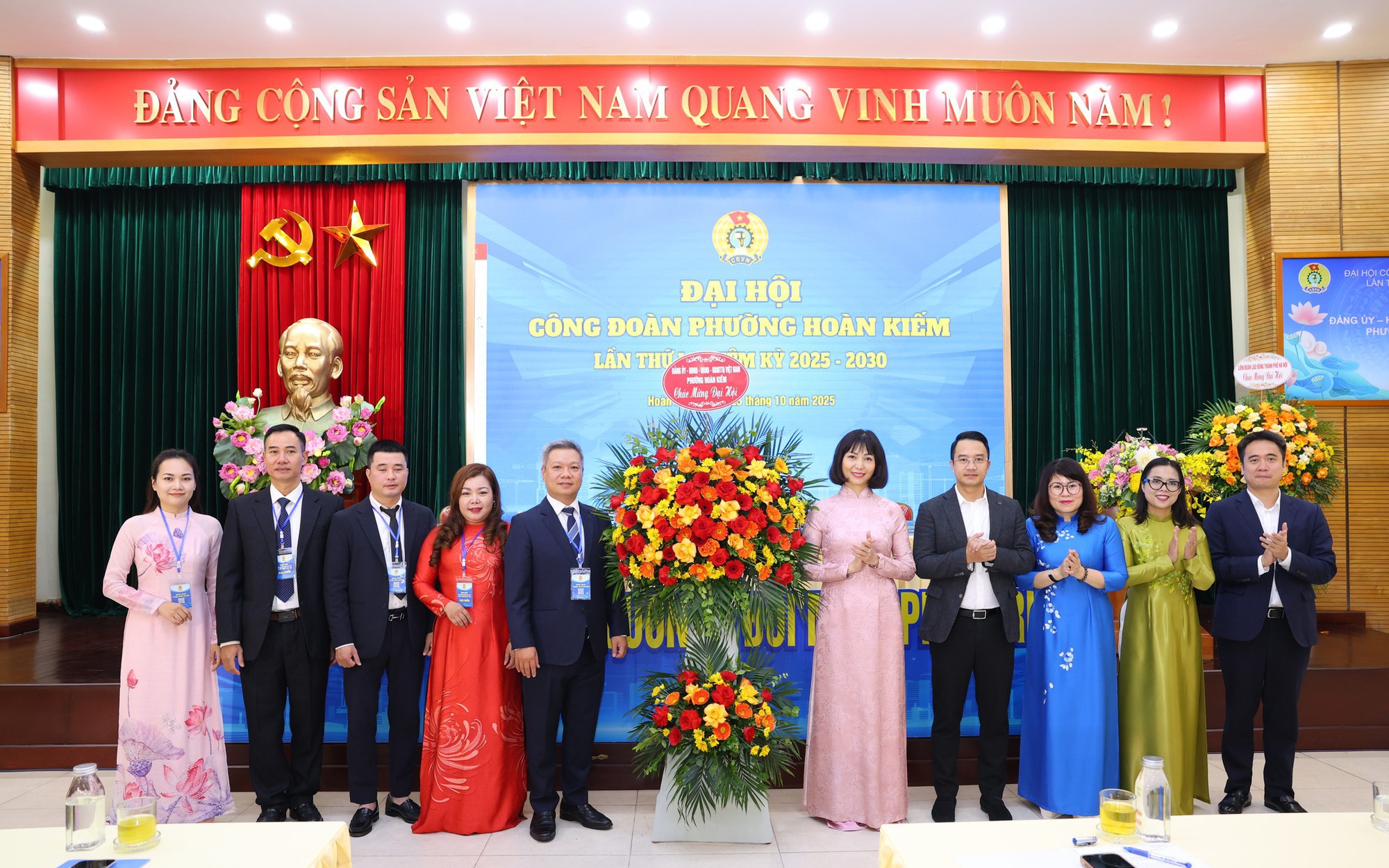 Ban Thường vụ Đảng uỷ phường tặng hoa chúc mừng Đại hội Công đoàn phường Hoàn Kiếm lần thứ I, nhiệm kỳ 2025 - 2030
